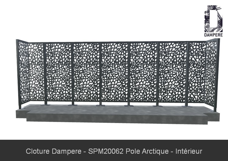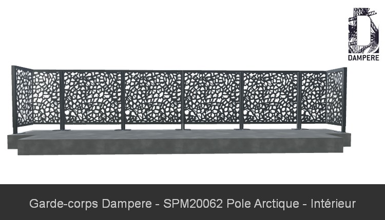 La tôle Pôle Arctique s'utilise majoritairement dans une configuration linéaire, du type garde-corps ou clôture. Le dynamisme des formes découpées trouve son sens dans un alignement horizontal.