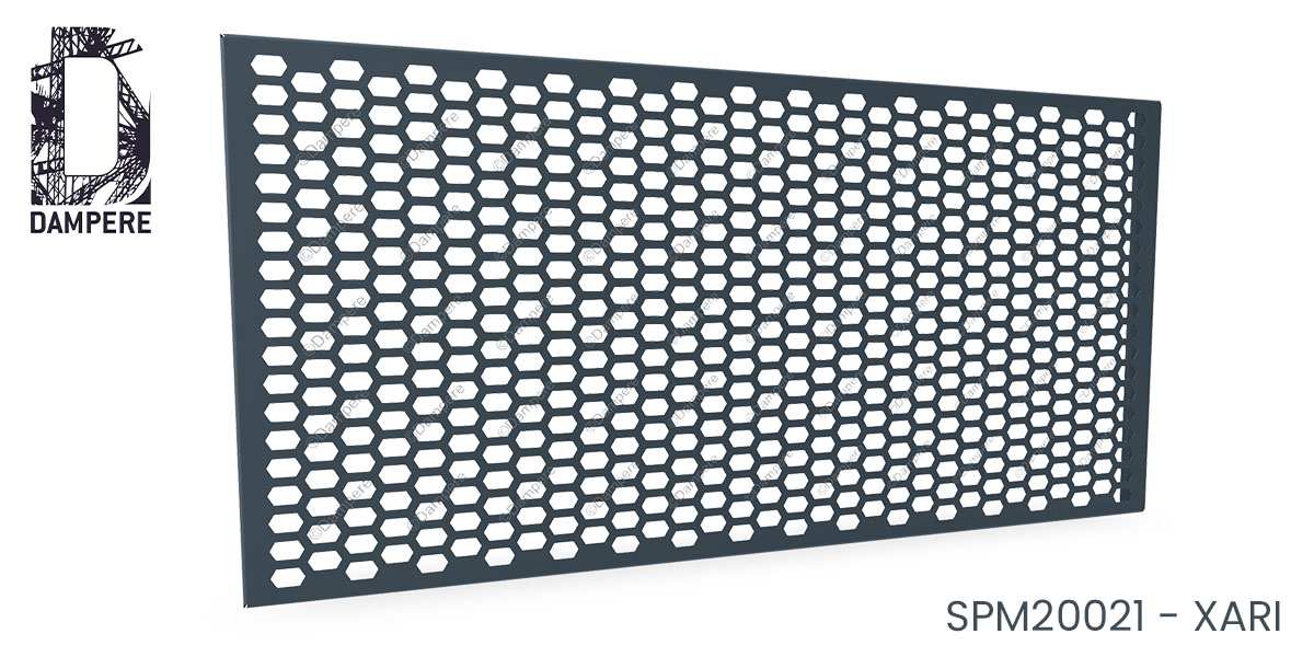 Tôle perforée XARI à trous hexagonaux allongés pour former des vides de grande taille, dispositions des perforation en quinconce.