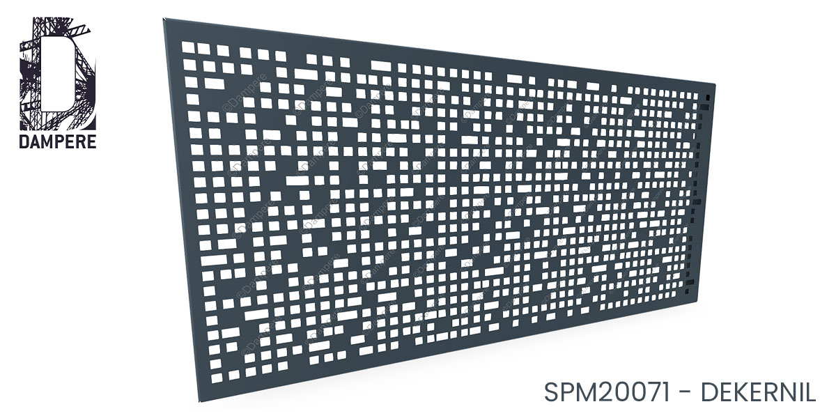 Le dessin de la tôle Cade Dekernil évoque, par ses pleins et ses vides gradués, une mosaïque urbaine ou un code visuel en mouvement, rappelant les trames numériques, les façades paramétriques ou les compositions pixellisées du design contemporain. Cette esthétique rationnelle, modulable et lisible à différentes échelles, rend le moucharabieh métallique particulièrement adaptée aux architectures techniques et modernes, où la fonctionnalité rencontre le graphisme.