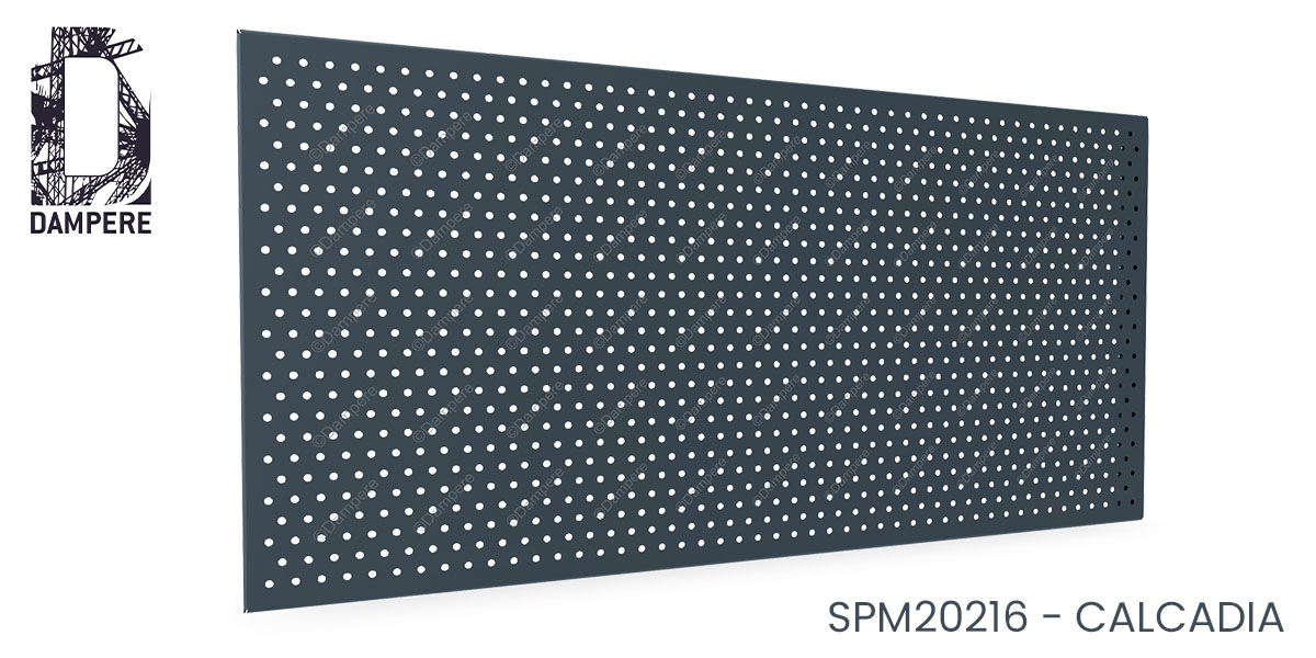 La tôle perforée Calcadia agit comme un bouclier visuel et matériel. Elle limite les échanges de vue, bloque les projections, et offre une résistance élevée grâce à la quantité importante de métal résiduel. Sa faible ouverture assure une excellente rigidité et une stabilité remarquable sur de grandes portées. Dans les architectures publiques, industrielles ou logistiques, elle devient un matériau de protection durable, sobre et maîtrisé. Le motif rond, discret, adoucit cependant la perception : la surface ne paraît jamais brutale, mais pleine et rassurante.