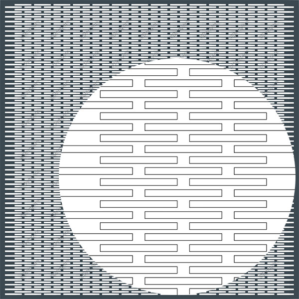Le rectangle perforée 5×56 mm de base de la matrice mécanique imprime une signature graphique nette et contemporaine sur le métal. Posé à l’horizontale, le panneau ajouré accentue l’effet “bandeau filant” et étire visuellement le linéaire de la façade ; à la verticale, la résille géométrique renforce la sensation de hauteur. Sur teintes sombres, l’effet de perforation reste sobre ; sur finitions claires, l’expression du voilage devient plus marquée.