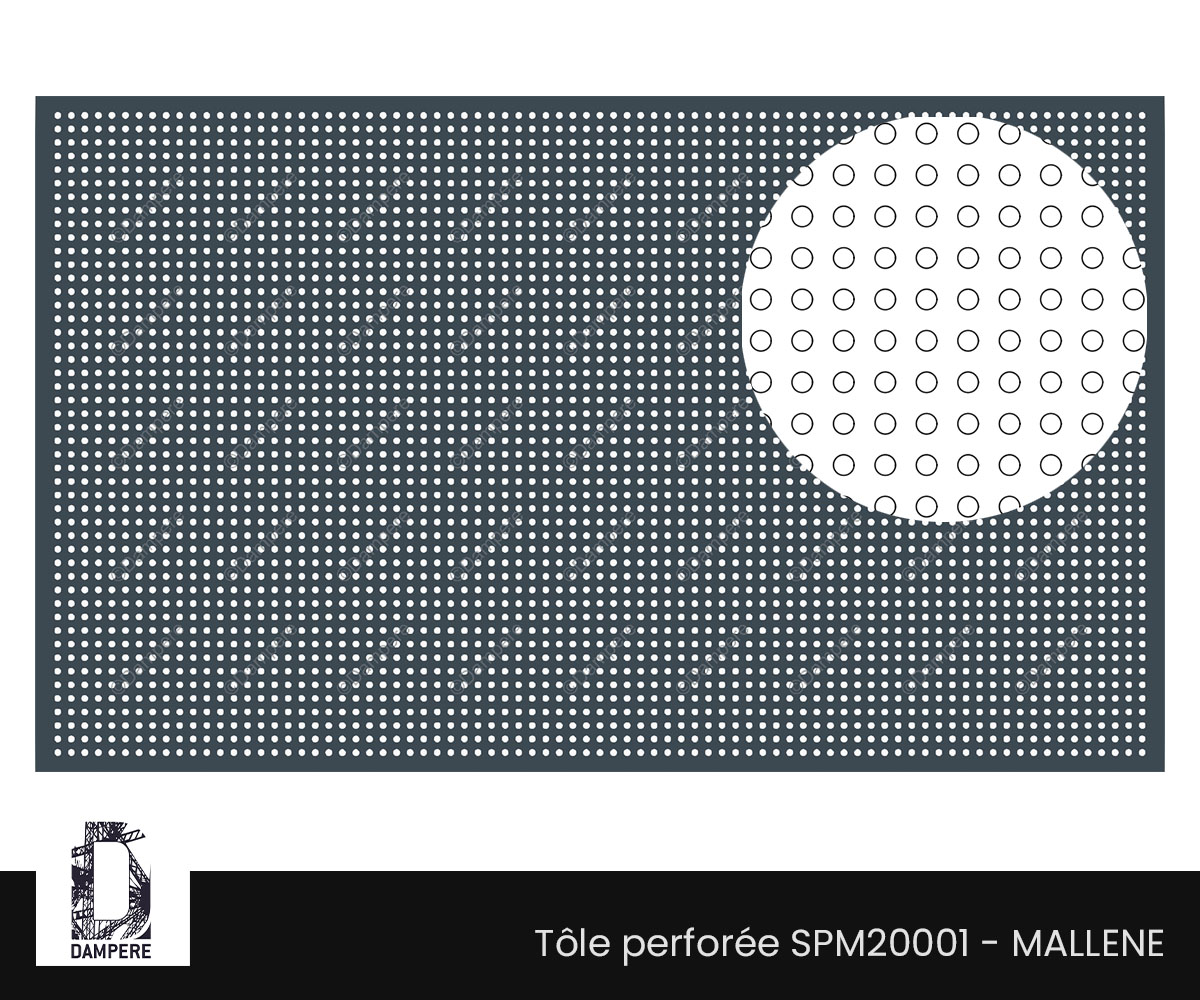 La tôle perforée ventilation Mallene DAMPERE permet de séparer tout en laissant passer l'air et le regard. A partir d'un motif simple à trou rond répétitif de diamètre 6 mm, le panneau garde une grande résistance mécanique malgré la perforation. Le conseil de l'équipe