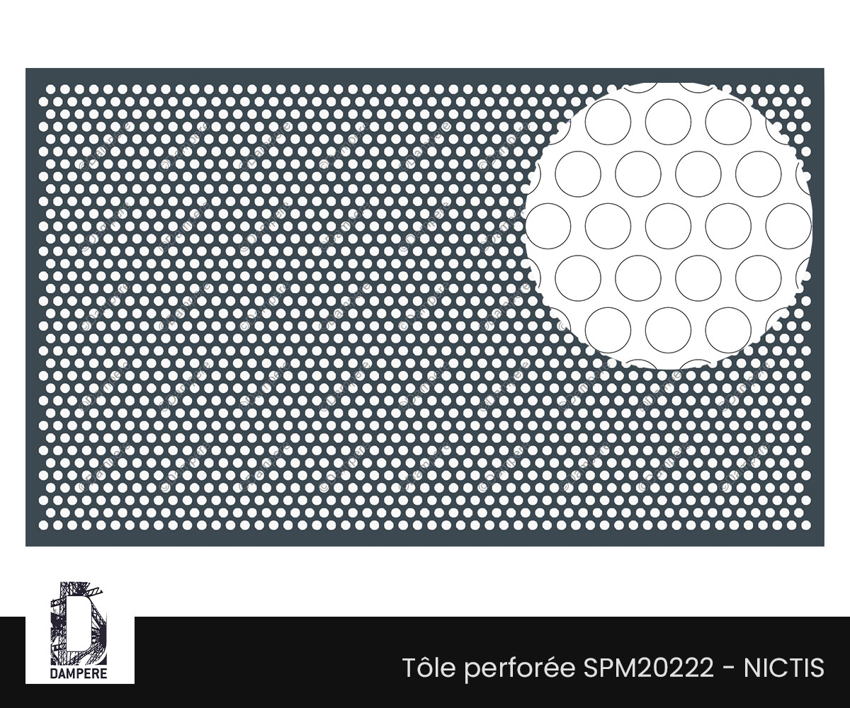 La tôle perforée R25T33 – Nictis associe légèreté visuelle et performance mécanique, idéale pour les applications nécessitant à la fois transparence, ventilation et solidité. Le motif perforé de rond de 25 mm en disposition quinconce confère à la tôle un rythme doux et fluide, tout en conservant une structure équilibrée et rigide. En application extérieure, la tôle perforée R25T33 est particulièrement recommandée pour les clôtures urbaines ajourées, les façades ventilées, les locaux techniques ou les habillages d’équipements publics. Avec sa géométrie circulaire régulière et son ouverture de plus de 50 %, la perforation R25T33 permet une grande perméabilité à l’air tout en limitant la charge au vent. Elle offre un bon compromis entre résistance et légèreté. La tôle résiste aux impacts et conserve sa planéité sur de longues portées grâce à une épaisseur de métal pouvant atteindre 3 mm. La tôle perforée R25T33 s’utilise en clôture urbaine ou périmétrique : elle crée un écran visuel modulé, laissant passer l’air et la lumière tout en maintenant une visibilité naturelle vers l’extérieur. En garde-corps de balcon ou d’escalier, le motif Rv25-33 répond aux exigences de sécurité réglementaire tout en apportant une transparence visuelle confortable. La tôle assure : – la protection nécessaire contre les chutes, – la continuité visuelle du paysage ou du jardin, – et une stabilité mécanique suffisante pour des panneaux autoportants jusqu’à 1,5 m² sans cadre renforcé. Le dessin perforé en quinconce R25T33 adoucit la perception du métal et confère une écriture visuelle souple et contemporaine, adaptée aux architectures résidentielles ouvertes, aux programmes scolaires, sportifs ou tertiaires. Avec une transparence supérieur à 50 %, la tôle R25T33 assure une ventilation naturelle optimale tout en protégeant les façades du rayonnement solaire direct. Elle constitue une solution idéale pour les habillages techniques, les caches de ventilation.