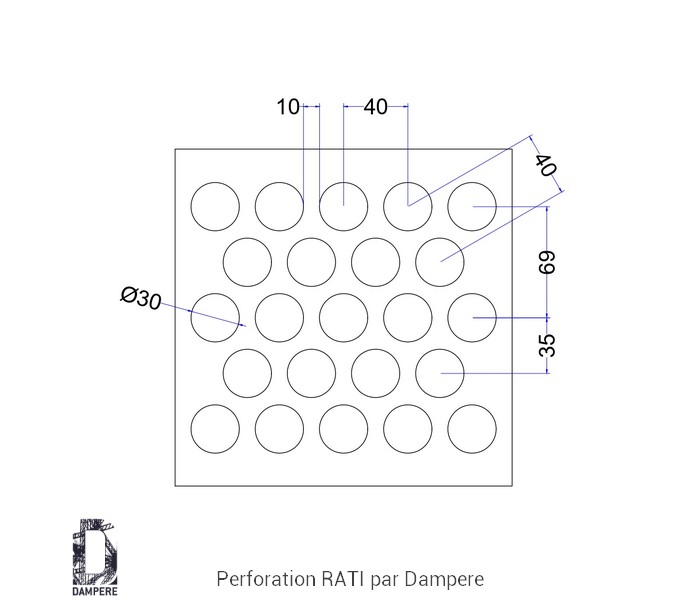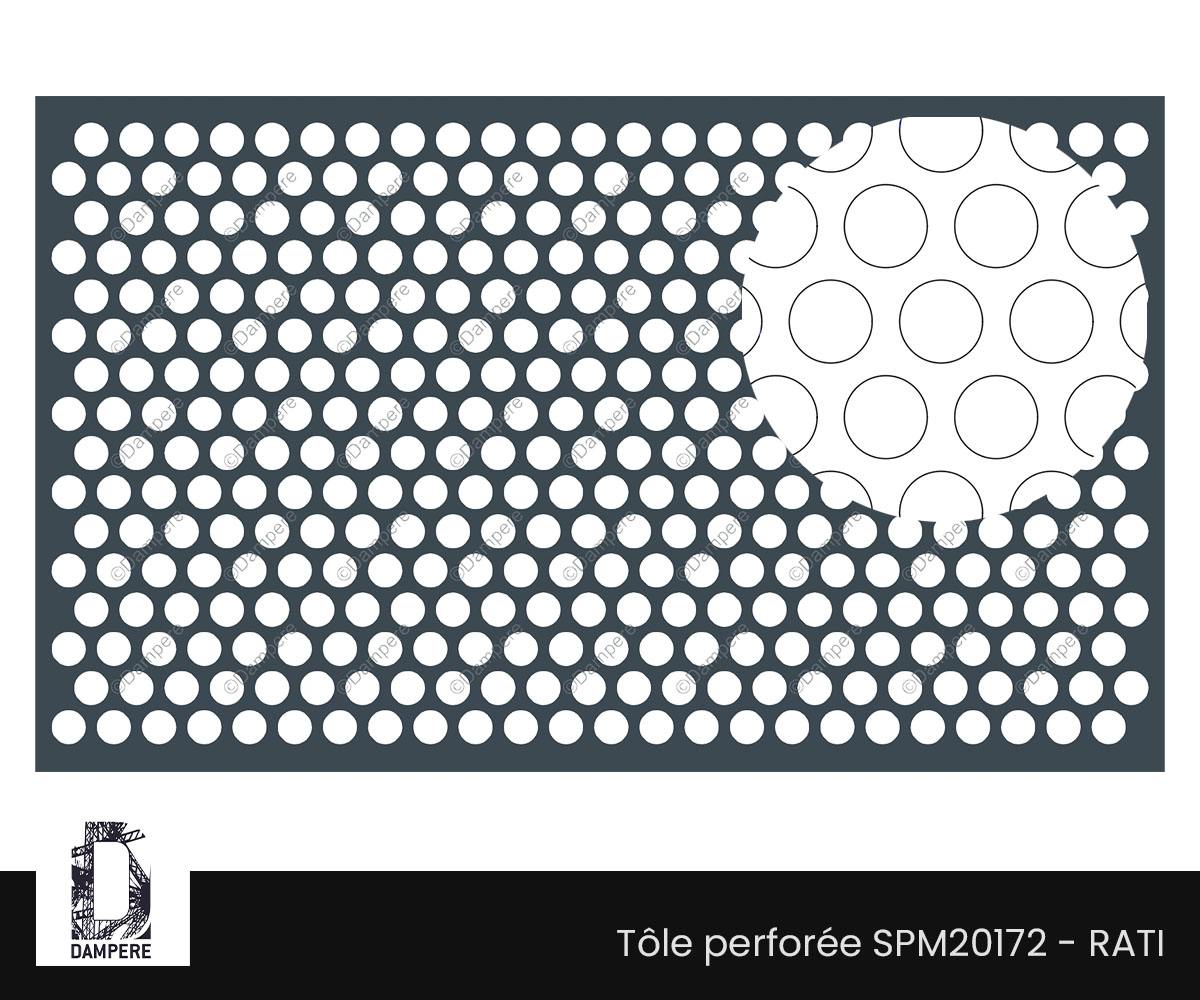 La tôle perforée R30T40 – Rati associe ouverture, stabilité et équilibre visuel. Son motif rond de 30 mm en disposition quinconce forme une grille régulière et harmonieuse offrant une transparence > 50 %, idéale pour les applications qui recherchent à la fois une forte aération et une présence visuelle structurée. Cette perforation classique de type Rv30-40 s’impose dans les architectures contemporaines ouvertes : séparatifs d’équipements publics, parements de façades ventilées, enveloppes techniques ou structures métalliques décoratives. Le conseil de l'équipe
