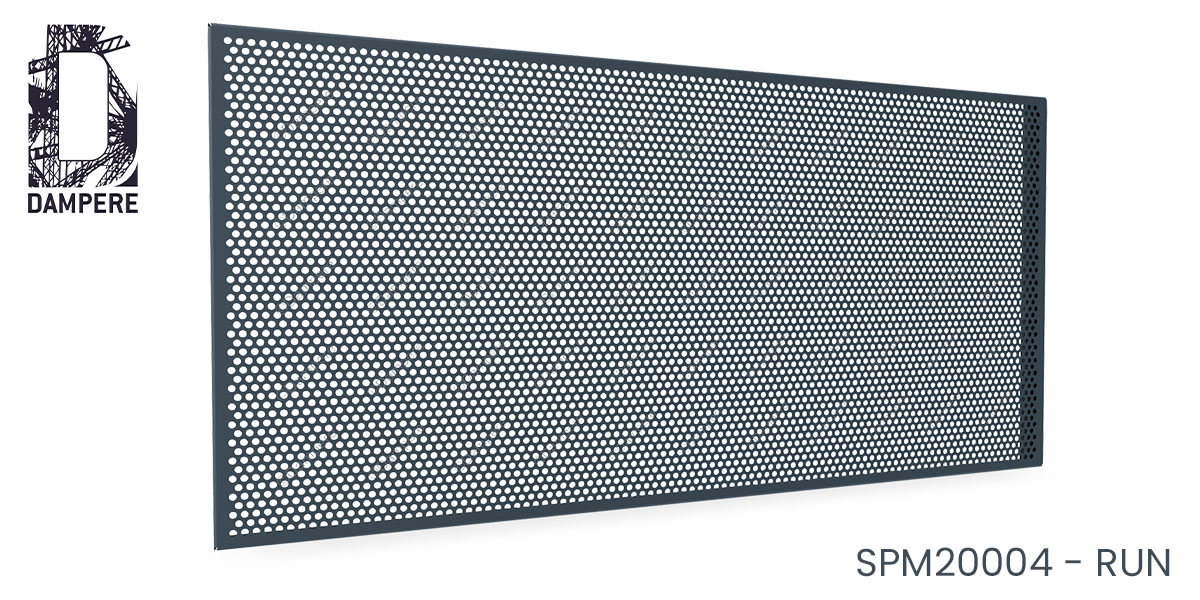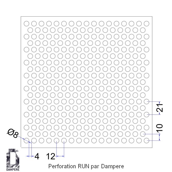 Tôle perforée standard RUN à trous ronds de taille intermédiaire, disposition en quinconce pour créer une grille très aérée.